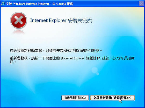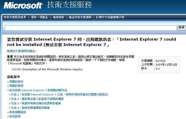 訊息內容沒有寫得很清楚 ,因此也不知道為什麼發生錯誤 ,雖然安裝程式指示查閱 IE7安裝疑難排解 ,